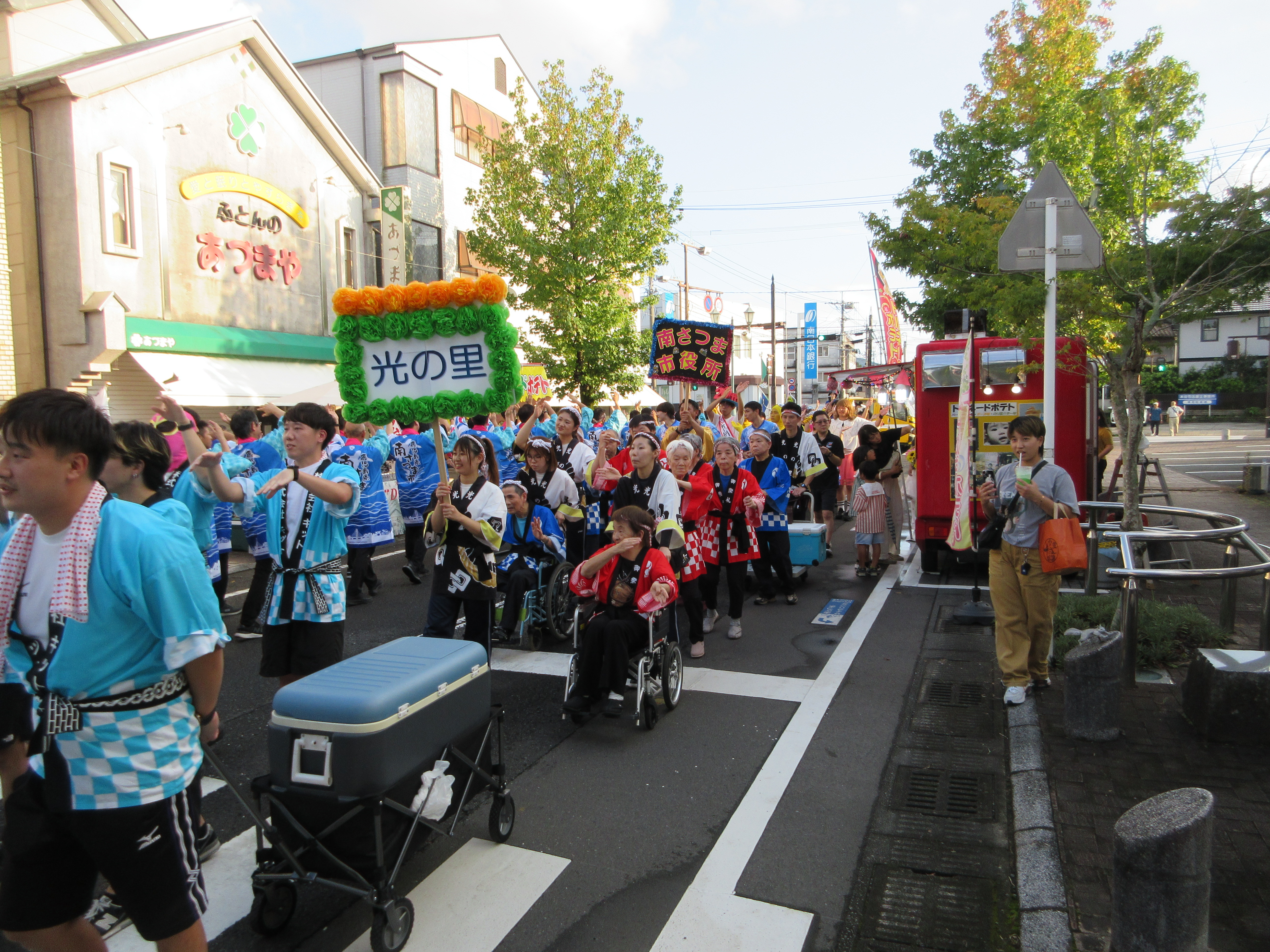 光の里は、地域に開かれた施設を目指しています。今回の「南さつまフェスタふるさと総踊り」への参加を通じて、地域の皆様とふれあい、障害者支援施設としての光の里を知っていただく良い機会となりました。障がいに対する理解が、少しでも深まっていれば幸いです。